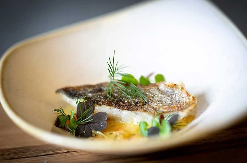 Filosofien i køkkenet er, at mad ikke bare er mad. Det skal være en oplevelse for vores gæster – hver gang. Derfor bruger vi blandt andet det lokale mejeri, som producerer nogle af landets bedste oste, udskæringer fra vores lokale slagter og lammet er fra det lokale Alslev Å, der ligger placeret lige på grænsen til Nationalpark Vadehavet. Det ligger os meget på sinde, at vi ved, hvor produkterne kommer fra og vi finder vores inspiration i den vestjyske naturs spisekammer.